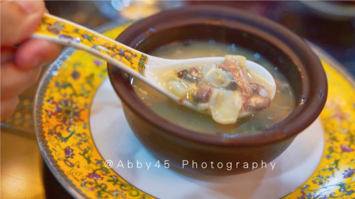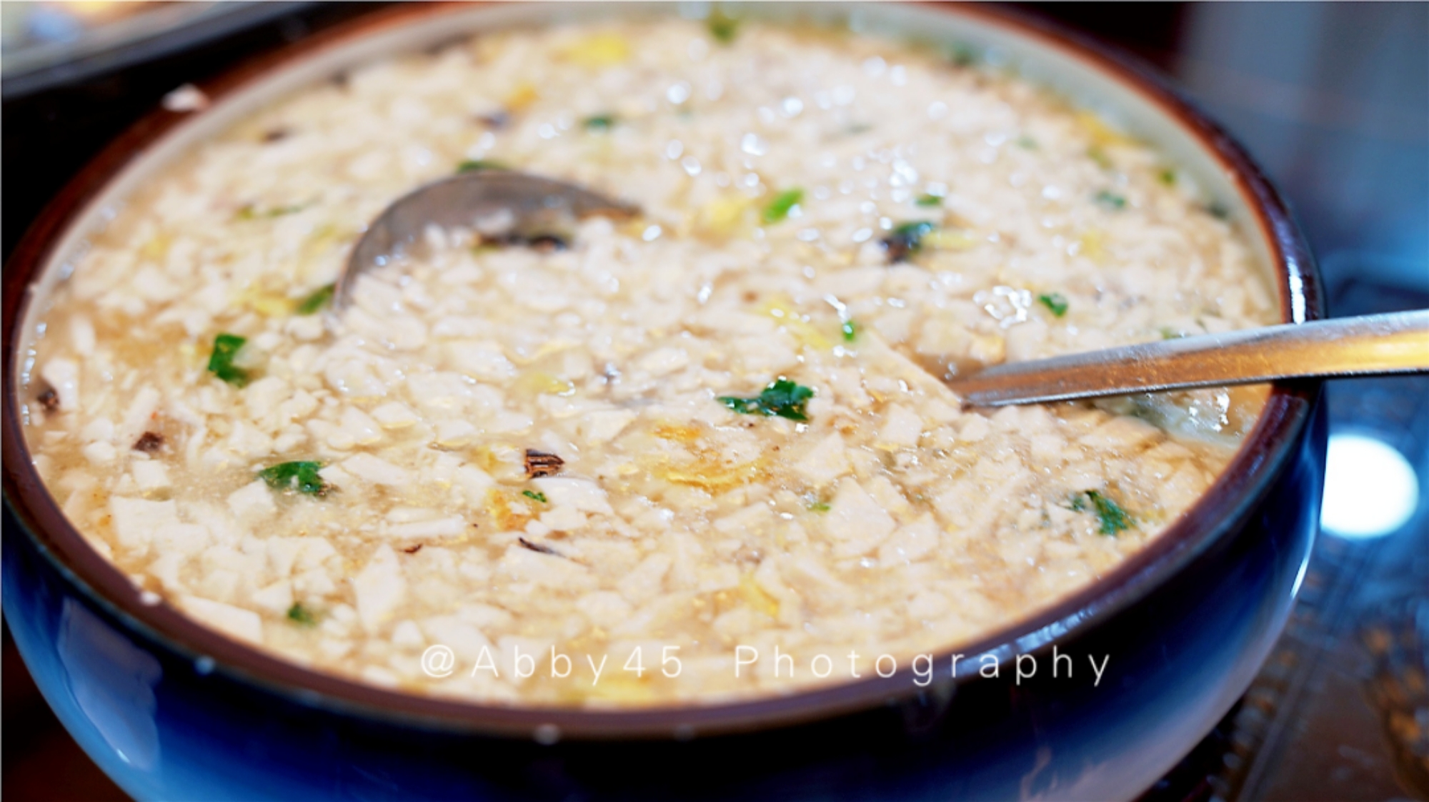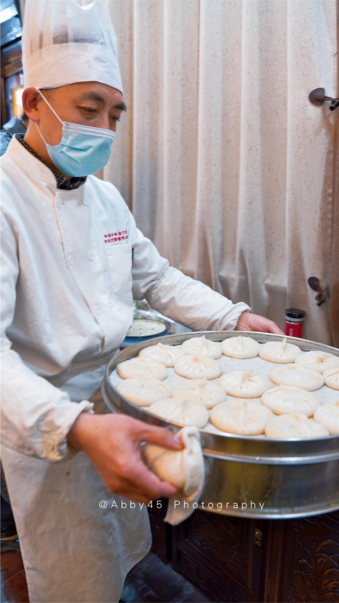 所以到文楼必点的就是他们家的招牌蟹黄汤包。汤包内馅心以肉皮、鸡丁、肉块、蟹黄、虾米、竹笋、香料、绍兴酒等十二种配料混合而成,先加温成液体,后冷却凝固。把冷冻后的馅心纳入包内,入笼而蒸,出笼汤包中的馅心成液体。在这里我们还有幸见证师傅用手抓汤包入盘的情景,如此滚烫又筱薄的包子皮,在师傅手中乖巧移动,让人叹为观止。