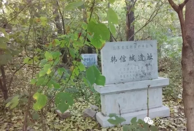 清江浦城南,从贯穿淮安市区南北主干道淮海路南端,过大运河桥,向西不远,有韩信城。筑于公元前202年,遗址至今犹存。南面及东、西两面高阜隆起,似可见出两千年前城池的规模。